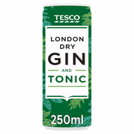 Tesco Dry Gin & Low Calorie Tonic 4X250ml | Drinks |